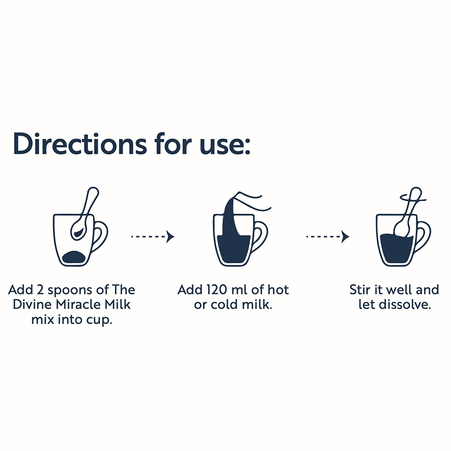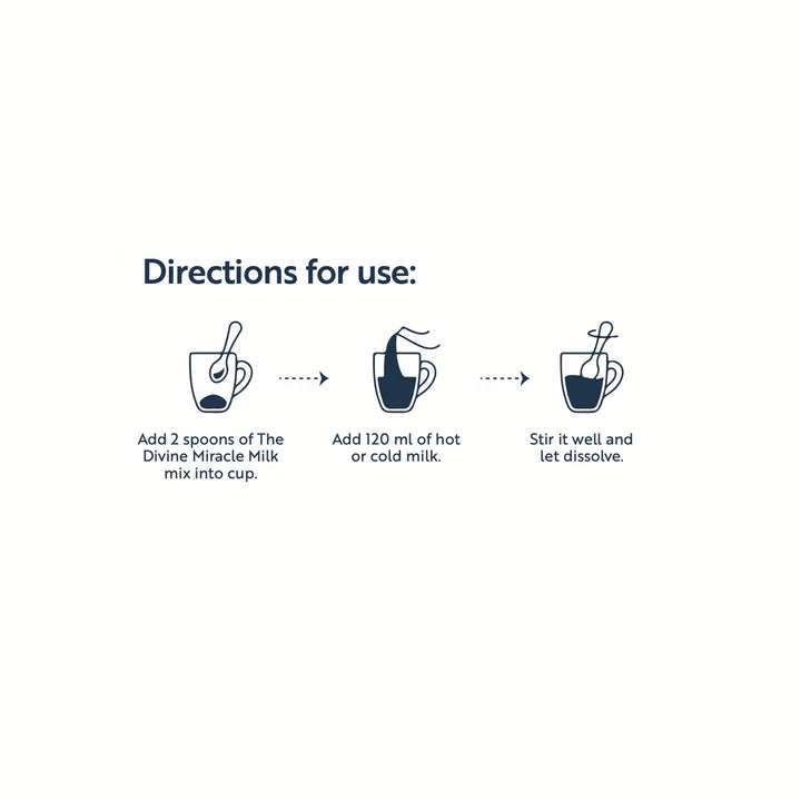 2. HOW TO MAKE IT?: 'The Divine Foods' Moringa Miracle Milk Mix can be mixed with hot or warm milk. It tastes way better with hot milk. Also, it can be mixed with milk of your choice like soy milk or oat milk . 'The Divine Foods' Miracle Milk Mix is considered to be a natural health drink and it is better adviced to take it in mornings.