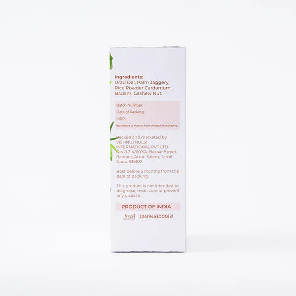 4.HOW TO USE ? Add 3 level scoops of Ulutham kanjiin lukewarm water/milk and stir continuously.Serve immediately.